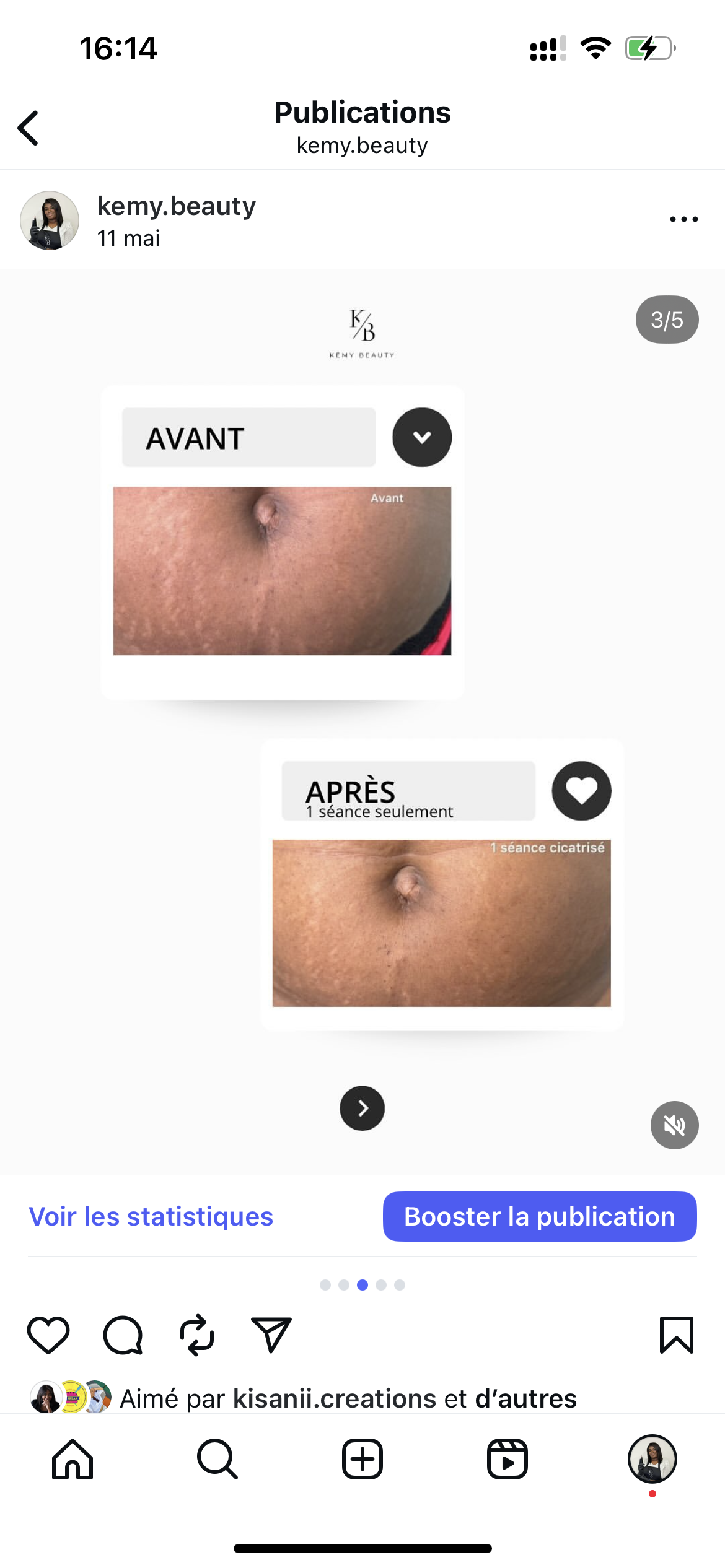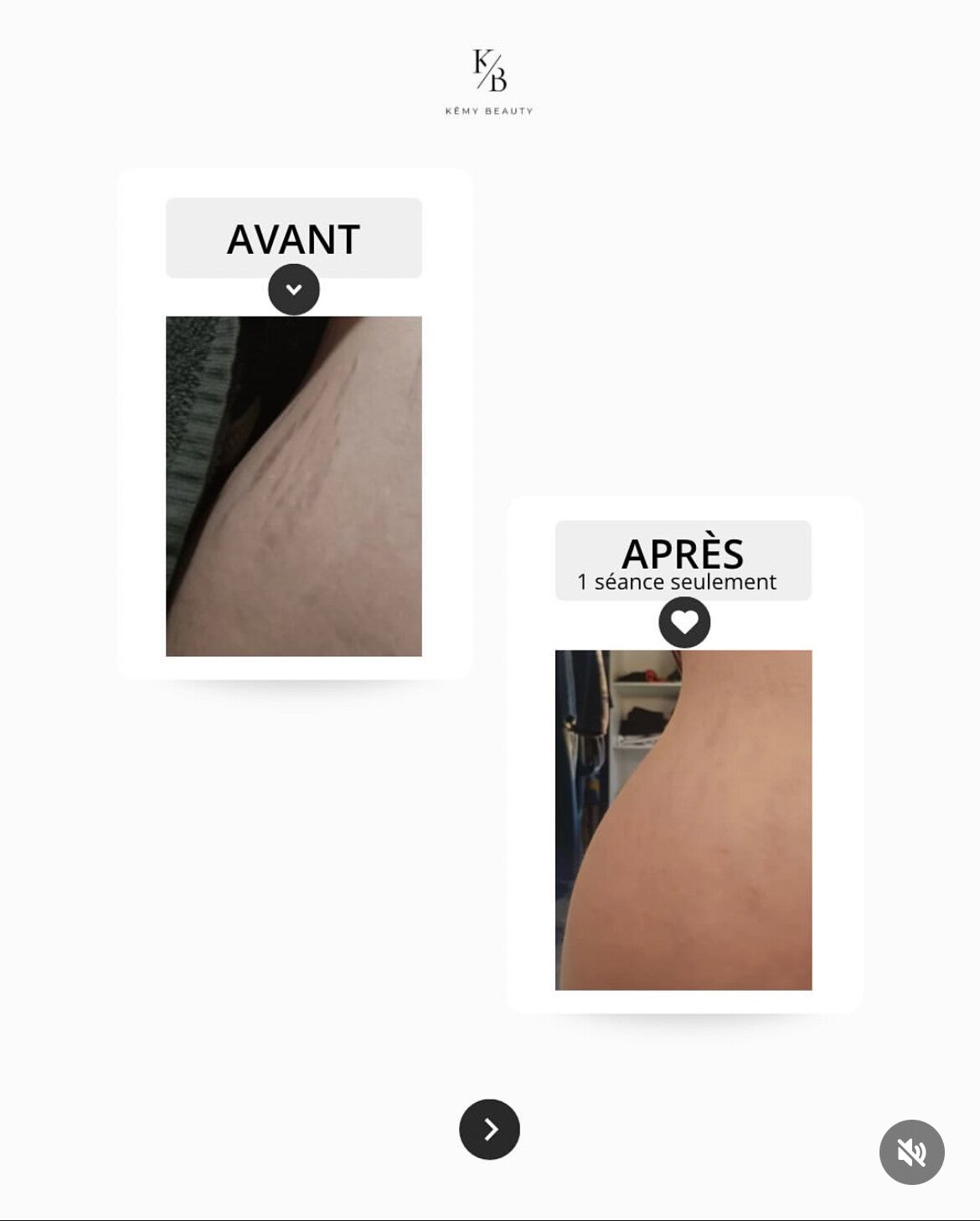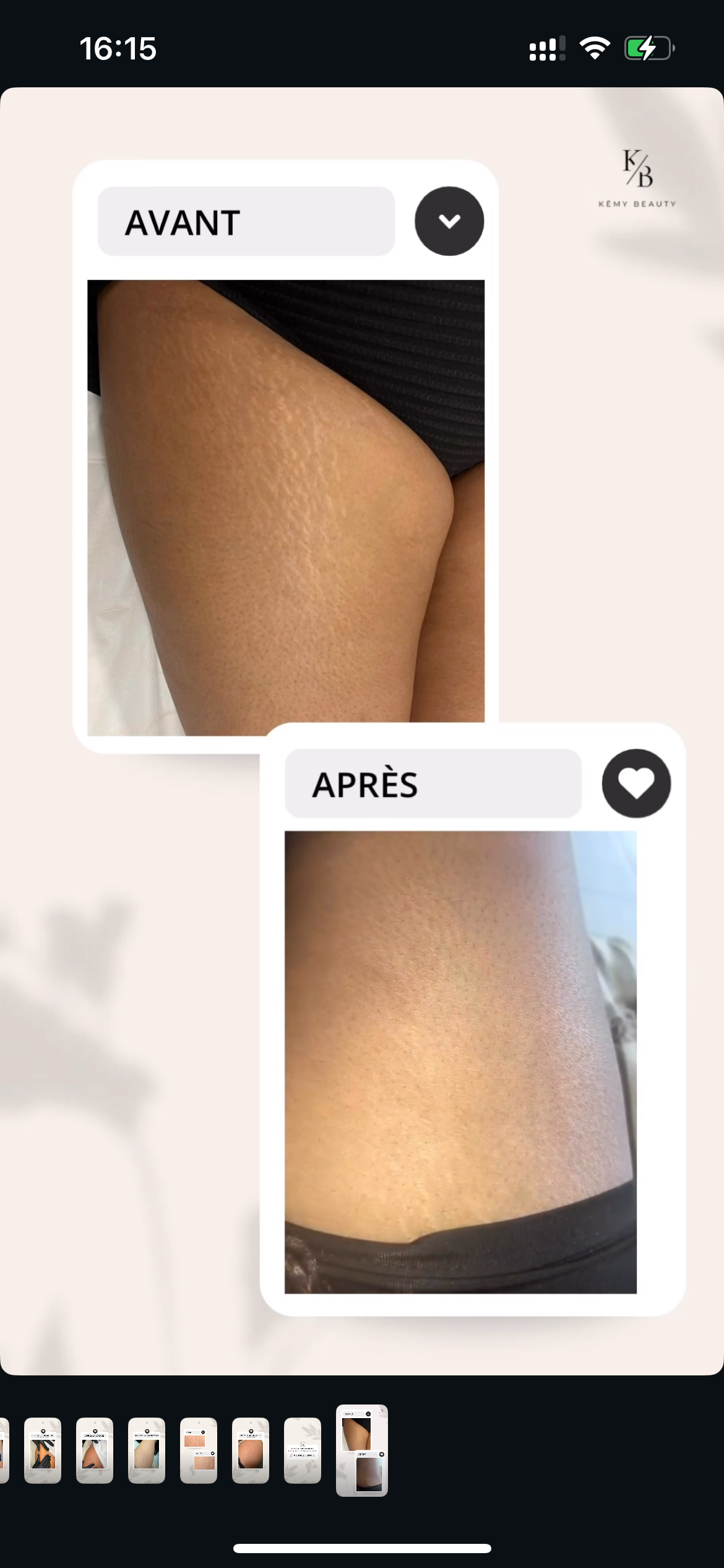 « J’avais des vergetures assez visibles depuis plusieurs années et c’était devenu un vrai complexe pour moi… J’ai décidé de faire une séance chez Kêmy Beauty et honnêtement, je ne m’attendais pas à un résultat comme ça dès la première séance. Ma peau est déjà beaucoup plus uniforme, les vergetures sont estompées et surtout le rendu est hyper naturel. Je me sens beaucoup mieux dans mon corps, j’ose enfin remettre certains vêtements que j’évitais avant. Stéphanie a su me mettre à l’aise, m’expliquer chaque étape et adapter le soin à ma peau. Je recommande à 100 % ! »